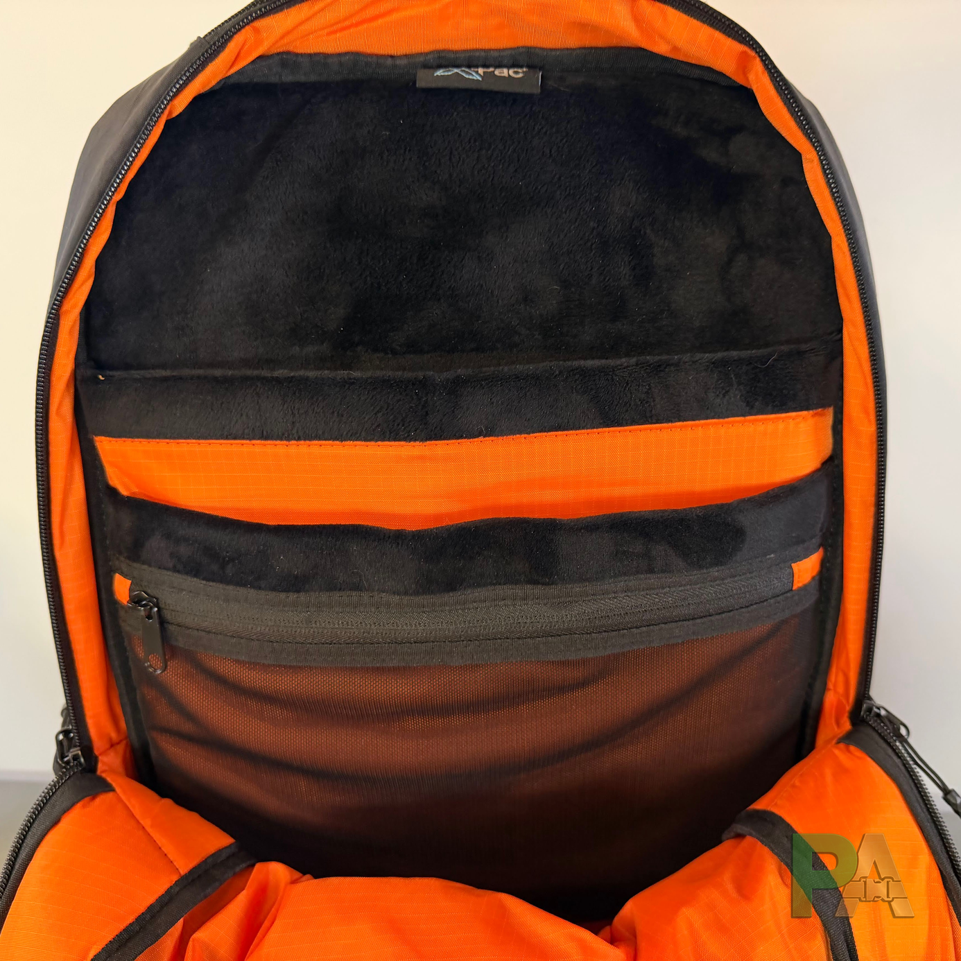 Ten plecak nie ma zbyt wielu opcji organizacji. Jeśli lubisz organizację AER-a, tutaj będziesz musiał dorzucić tech-pouch. Panel administracyjny jest skromny — mamy dwie kieszenie, jedna nad drugą: jedna zasuwana po lewej, druga po prawej stronie. W dolnej znajdziemy smycz na klucze, za co plus. Brakuje natomiast przegródek na drobiazgi (długopisy, kable, latarkę). Nie znajdziemy dedykowanej kieszeni szybkiego dostępu, ale górna frontowa może pełnić tę rolę i realnie tak jej używam.