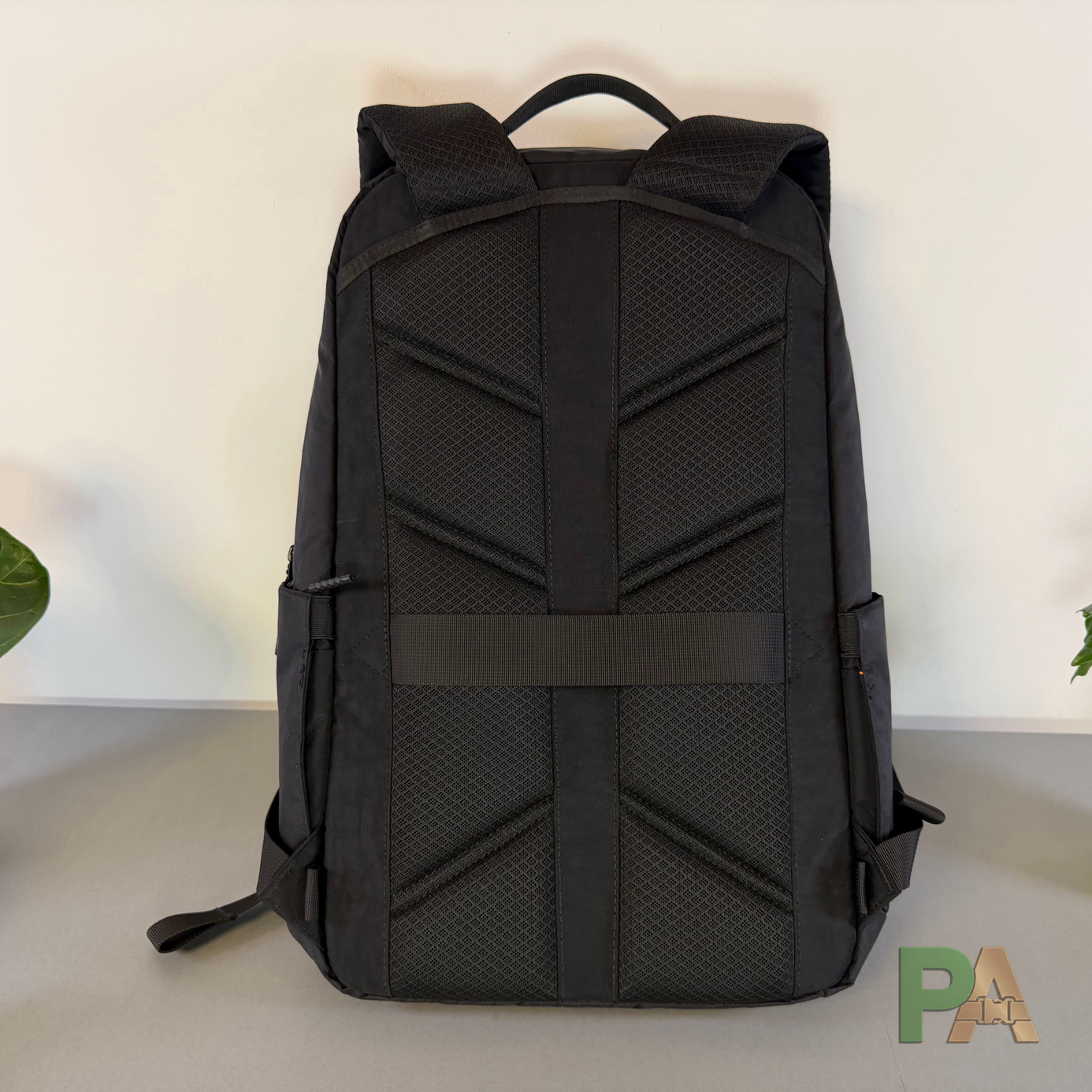Na plecach mamy piankę air-mesh z przeszyciami — jest bardzo wygodna, a kanał wentylacyjny zmniejsza potliwość. Pasek do bagażu nie psuje wrażenia. Nie jest to tak gruba pianka jak u AER (ale oni robią to najlepiej na rynku), ale nadal jest bardzo dobrze; gdyby usztywnienie pleców było trochę mniej sztywne, wrażenie byłoby jeszcze lepsze.