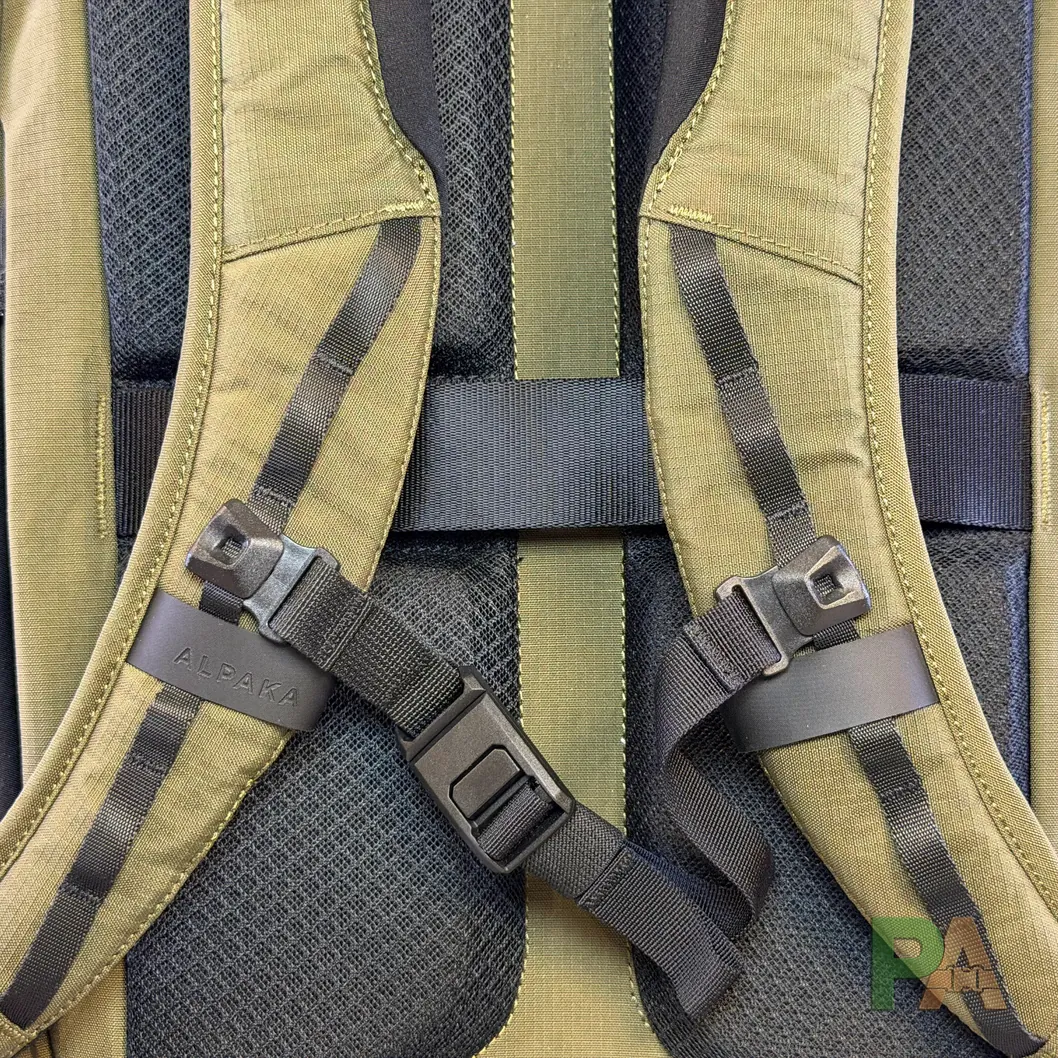 Szelki wykonane są z wysokiej jakości pianki, do tego jest świetny magnetyczny klips na pasku piersiowym - wszystko z najwyższej półki jakościowej. Wnętrze wykonano z autorskiego jasno szarego nylonu 150D X-Grid, materiał jest bardzo solidny, a jego kolor ułatwia szukanie przedmiotów.