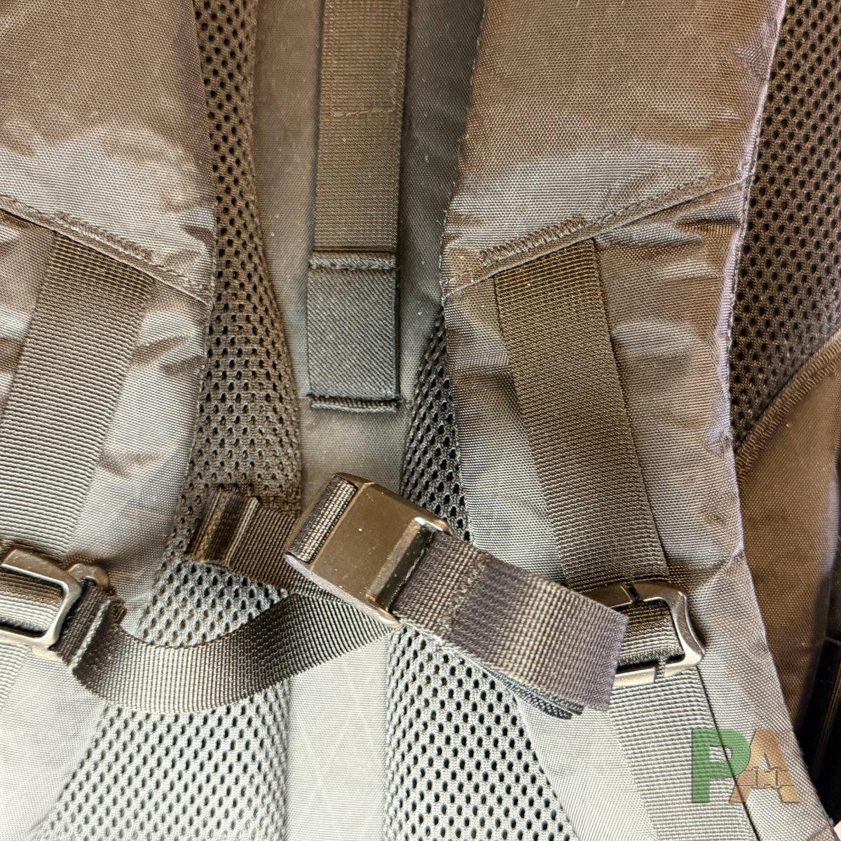 System nośny to jeden z mocniejszych punktów Whitley. Na plecach znajdziemy dwa szerokie pasy pianki air-mesh z kanałem powietrznym pośrodku - rozwiązanie bliskie standardowi AER (choć pianka AER jest nieco miększa w dotyku). Wentylacja działa dobrze, plecak nie przywiera do pleców.