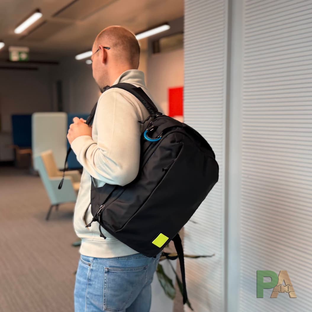 Techniczny minimalizm: czyste panele, zero wiszących pasków, dyskretny branding. W mieście i w biurze wygląda elegancko. Subiektywnie — jakość wykonania i przemyślenie każdego drobiazgu robi duże wrażenie. Jeśli szukasz hiper-organizacji, to nie jest plecak dla Ciebie. Jeśli elegancki minimalizm to Twój styl — lepszego plecaka nie znajdziesz.