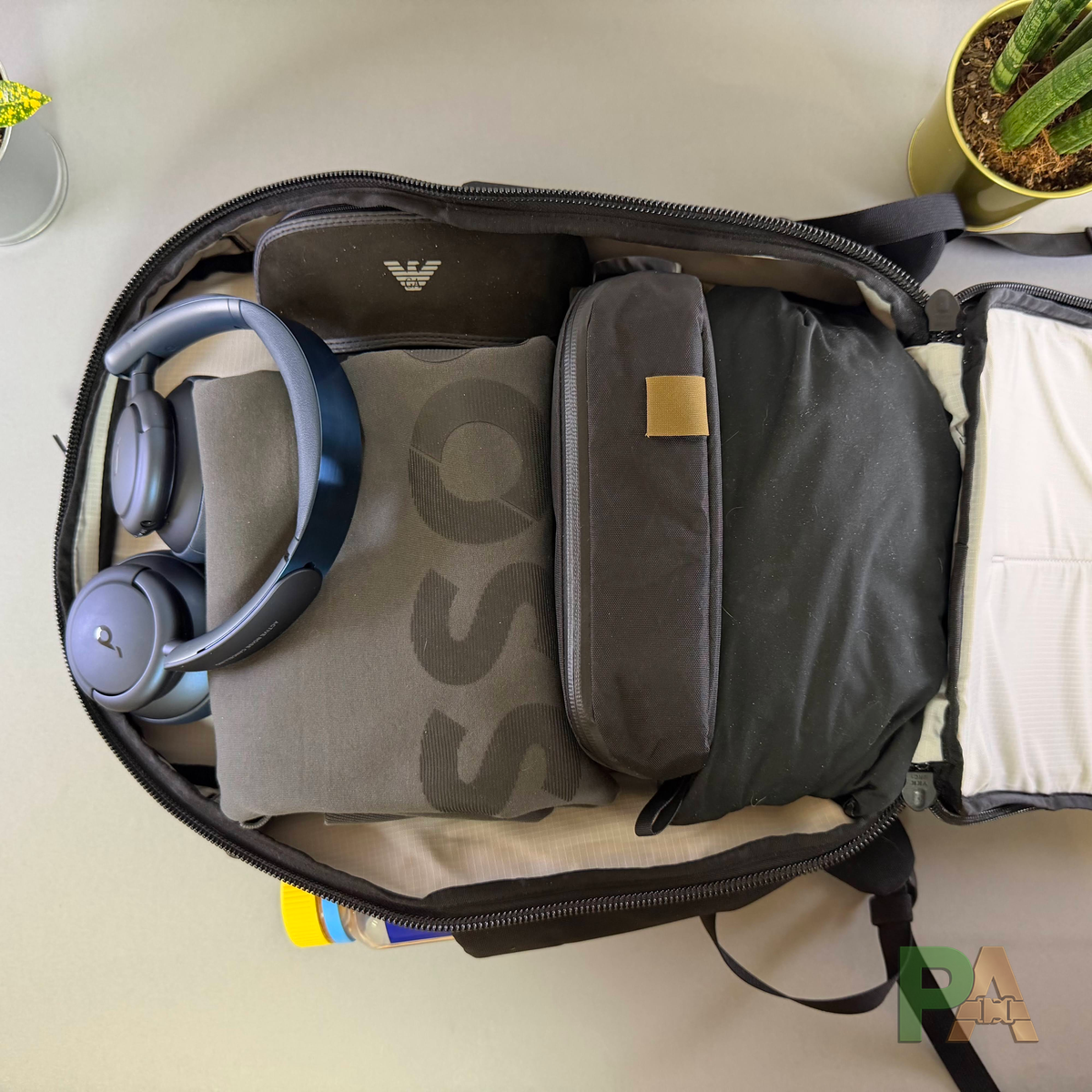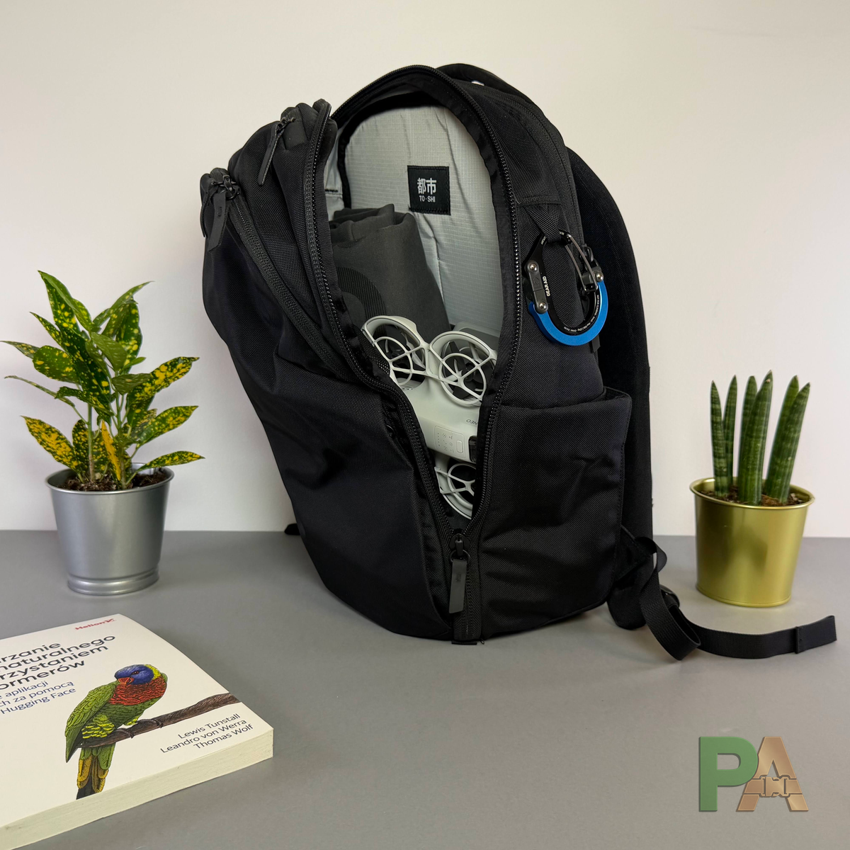 - Wariant miejski: iPad lub MacBook Air, kurtka przeciwdeszczowa, bluza, dron DJI Neo z akcesoriami oraz butelka 0,7 l. Wszystko mieści sie bez problemu i zostaje jeszcze trochę miejsca