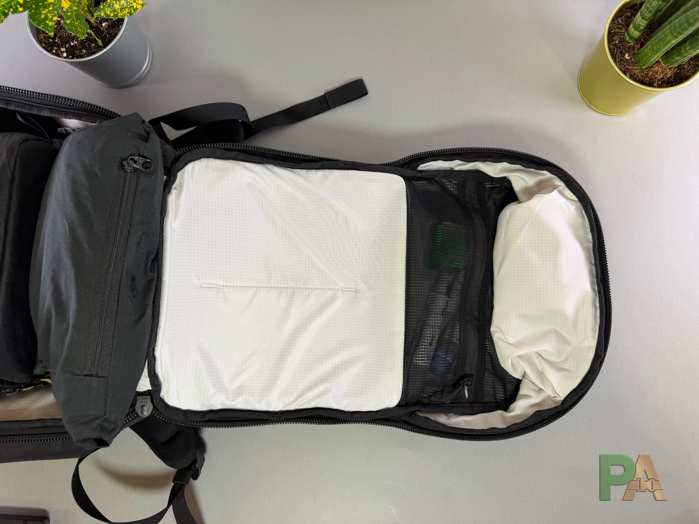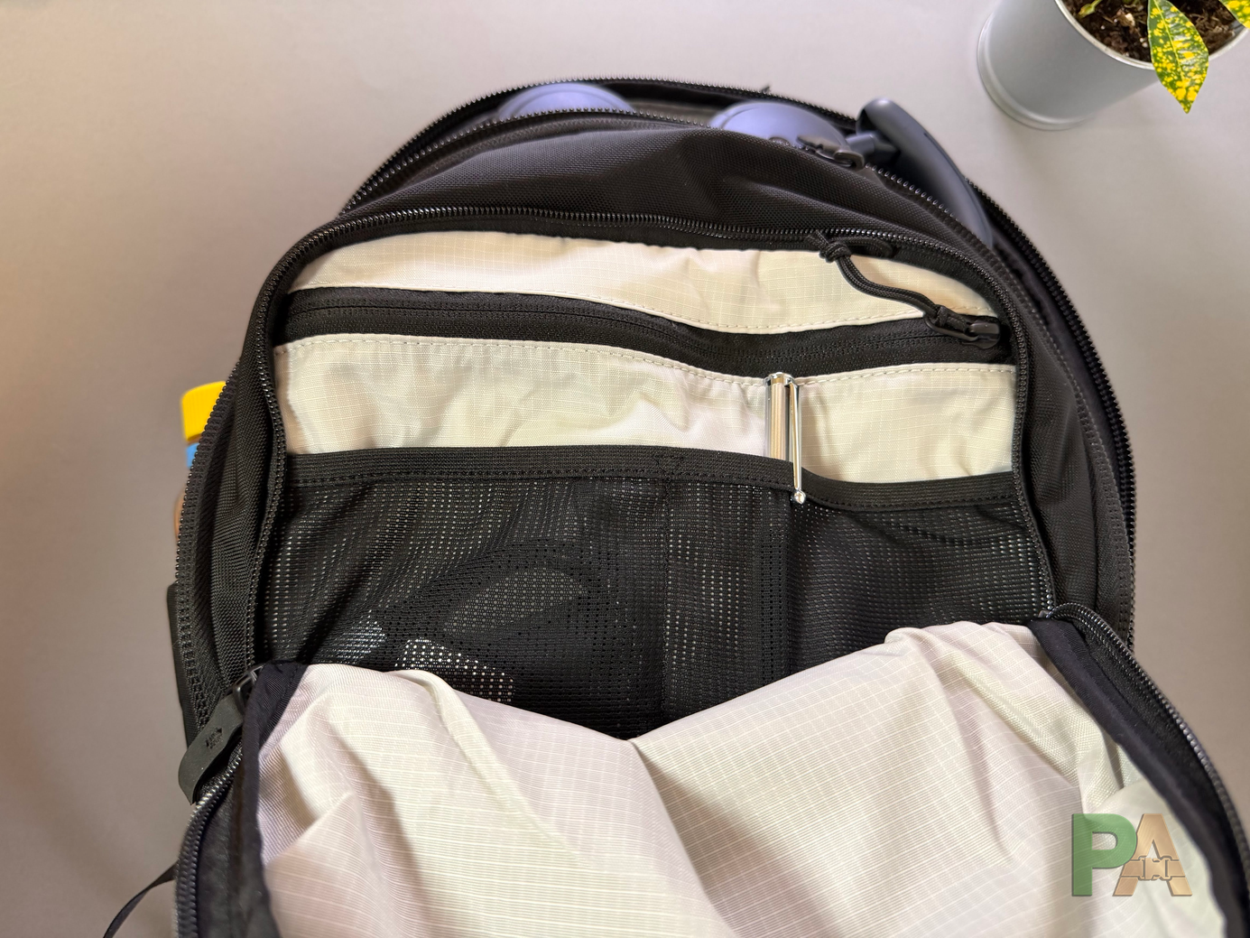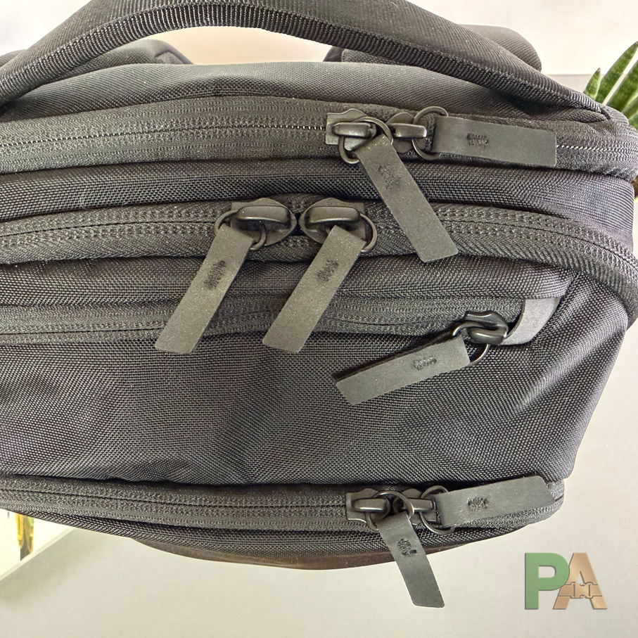 Nylon 840D wypada dobrze pod względem użytkowym: jest przyjemny w dotyku, nie szeleści jak X-Pac i wykazuje odporność na zarysowania. Jednocześnie nie daje wyraźnego poczucia segmentu premium.Podszewka 210D jest cieńsza niż u części konkurencji, ale funkcjonalnie wystarczająca. Jasne wnętrze, znane z produktów AER czy Evergoods, poprawia widoczność zawartości. Jakość wykonania stoi na wysokim poziomie – szycie jest równe, a uchwyt wygodny. Po kilku tygodniach użytkowania brak widocznych oznak zużycia. Zastosowane materiały budzą jednak niedosyt. W tym segmencie oczekiwałem Cordura ballistic lub X-Pac, które oferują wyraźnie bardziej „premium” odbiór. Na minus wypada również górna część przedniego panelu – jest zbyt miękka i przy częstym otwieraniu traci formę. To detal, ale zauważalny w tej klasie produktu.