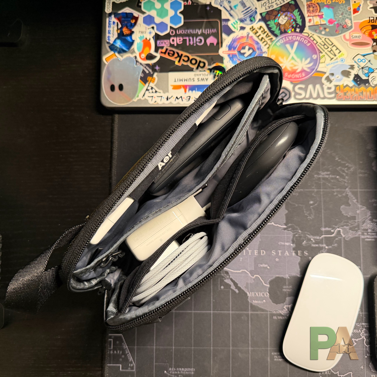 Aer Slim Pouch stawia na minimalizm. Kieszeni jest mniej, ale w praktyce wystarczają na większość potrzebnych rzeczy. Jeśli ktoś lubi bardzo rozbudowaną organizację, może odczuwać pewien niedosyt, czasem jest ciasno.